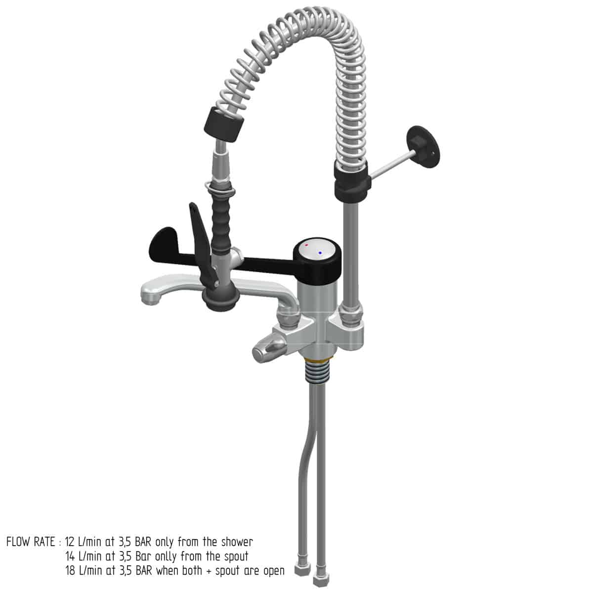De Monolith Voorspoeldouche tilt de prestaties van jouw keuken naar een hoger niveau met zijn geavanceerde technologie en doordachte ontwerp. Of je nu een druk restaurant, een professionele keuken of een voedselverwerkingsbedrijf runt, deze voorspoeldouche is een onmisbaar instrument om aan de strenge hygiënenormen te voldoen.