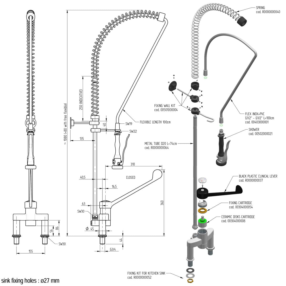 De Monolith Voorspoeldouche tilt de prestaties van jouw keuken naar een hoger niveau met zijn geavanceerde technologie en doordachte ontwerp. Of je nu een druk restaurant, een professionele keuken of een voedselverwerkingsbedrijf runt, deze voorspoeldouche is een onmisbaar instrument om aan de strenge hygiënenormen te voldoen.