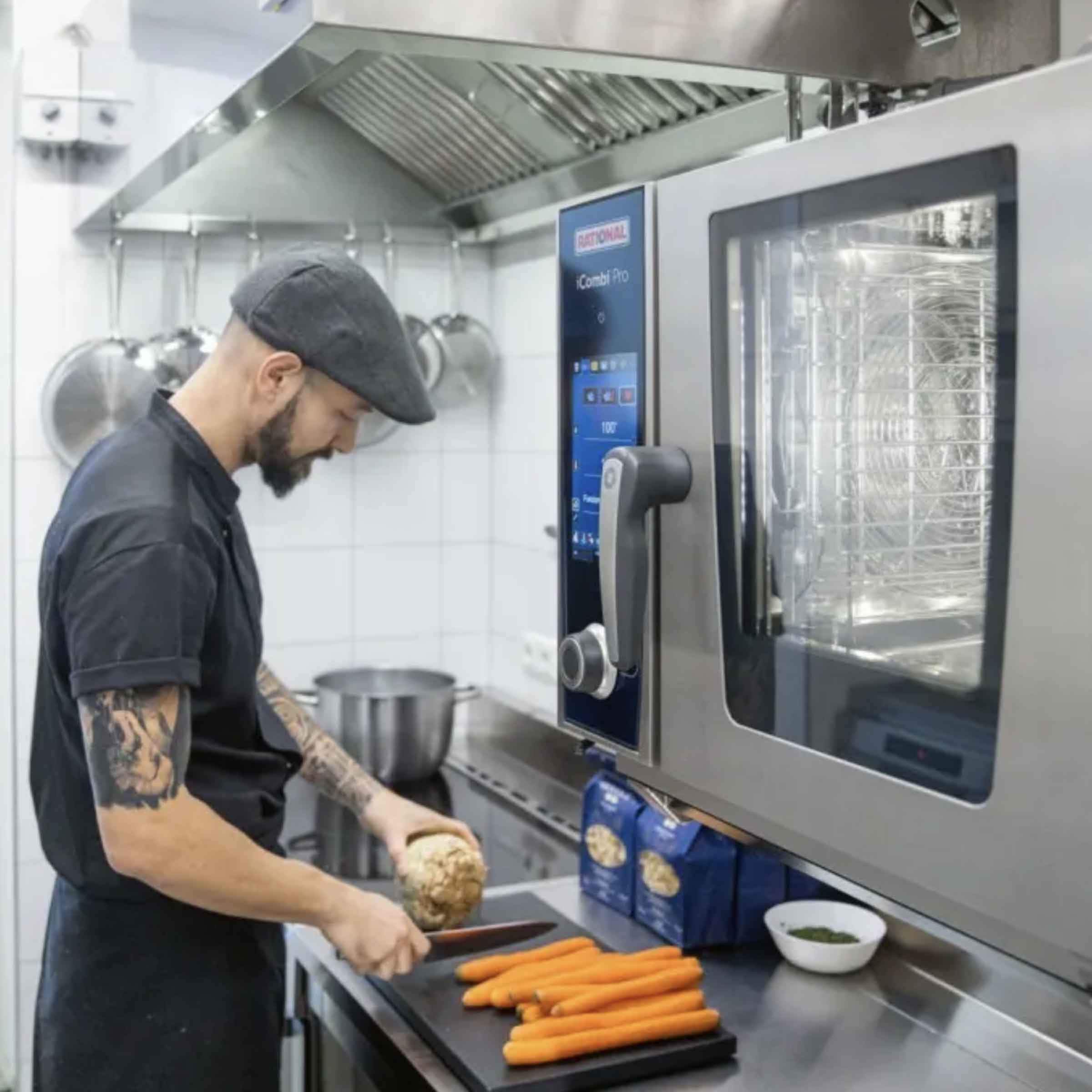 De Rational iCombi Pro combisteamer opent een wereld van mogelijkheden voor professionele keukens, met de mogelijkheid om op meerdere niveaus tegelijk te grillen, braden, bakken, stomen, stoven, blancheren, pocheren of frituren.